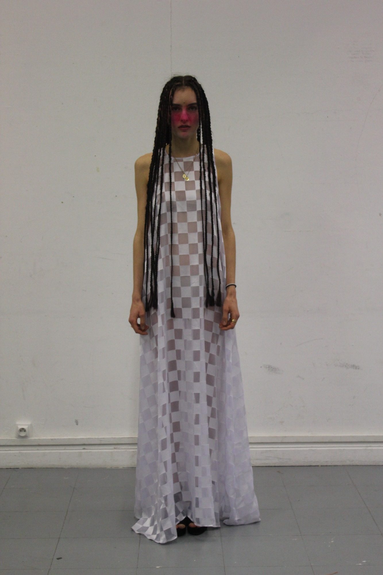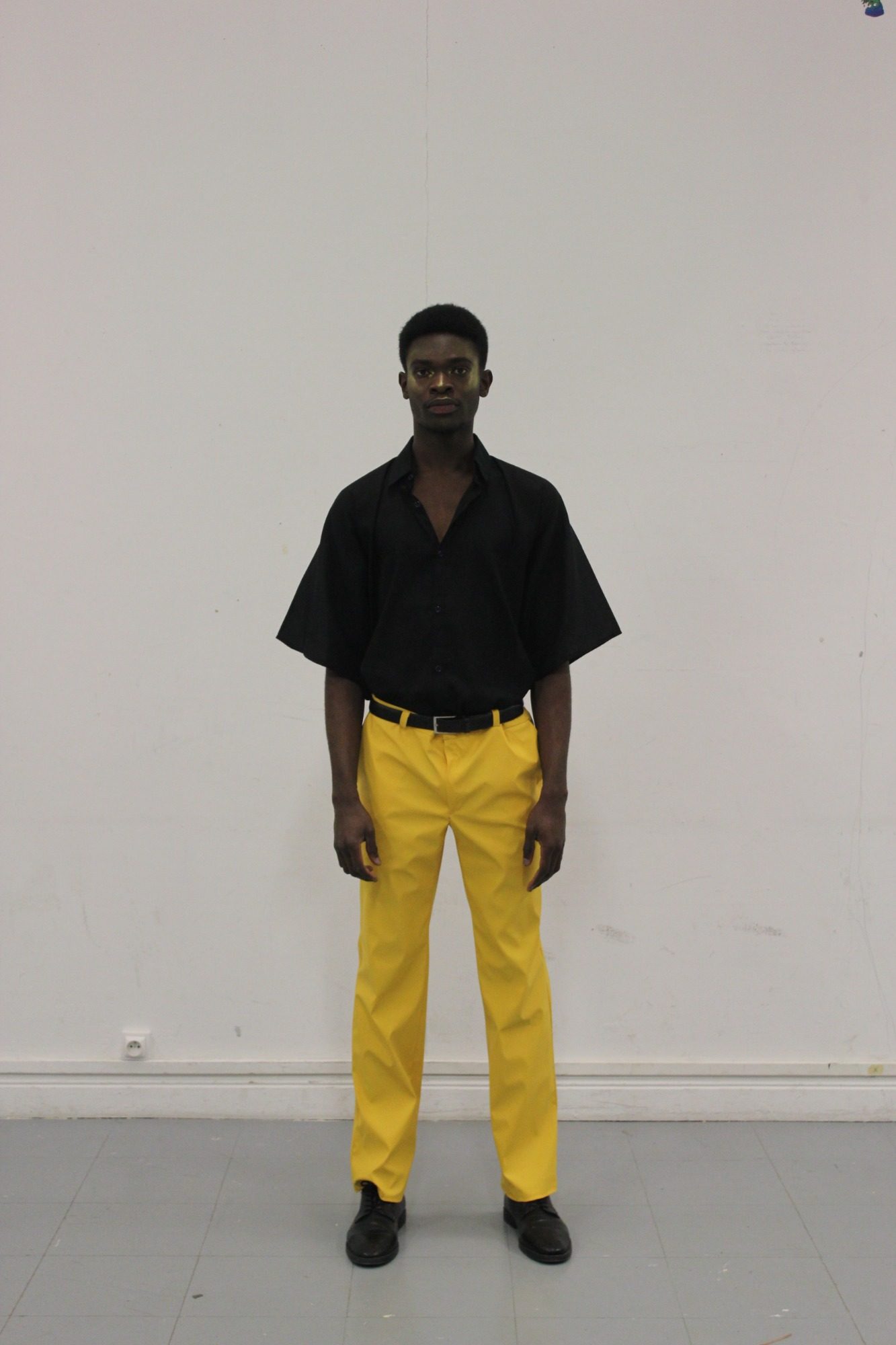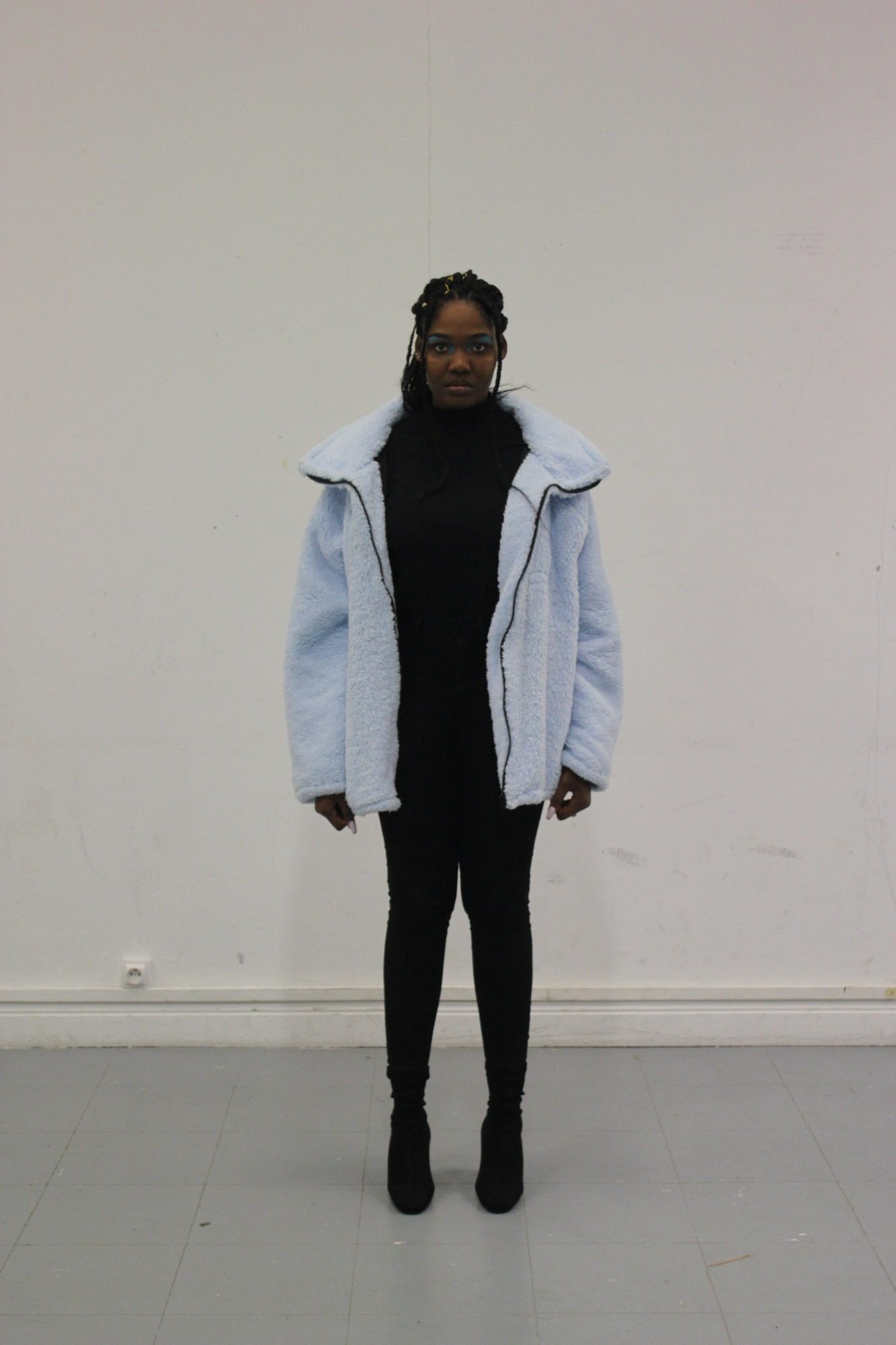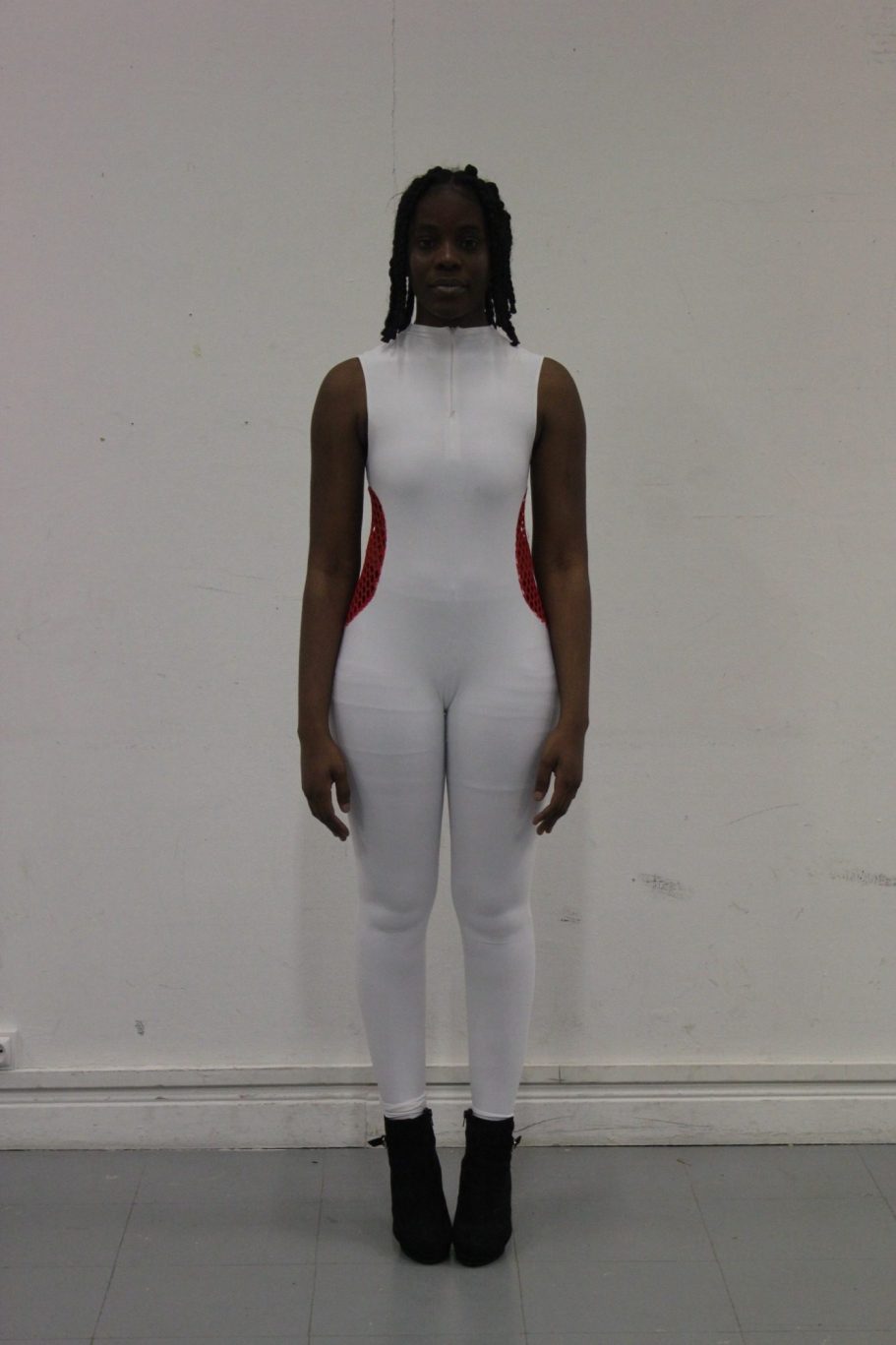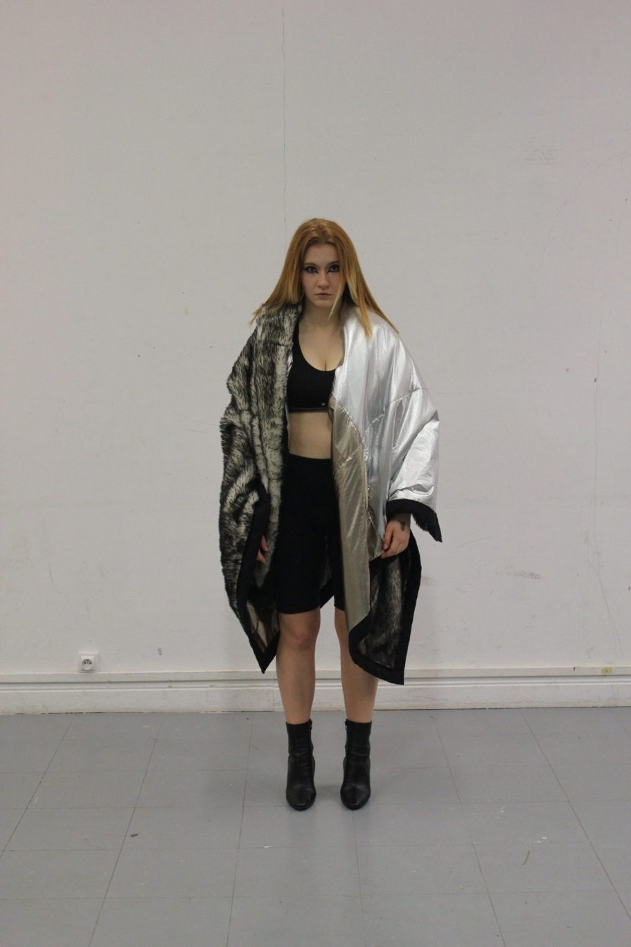 First collection revolving around colorful pieces, architectural cuts. A piece The Wolf, makes a nod to the performance I like America, and America Likes Me, by Joseph Beuys in 1974 in NY. This piece evokes threat and protection.